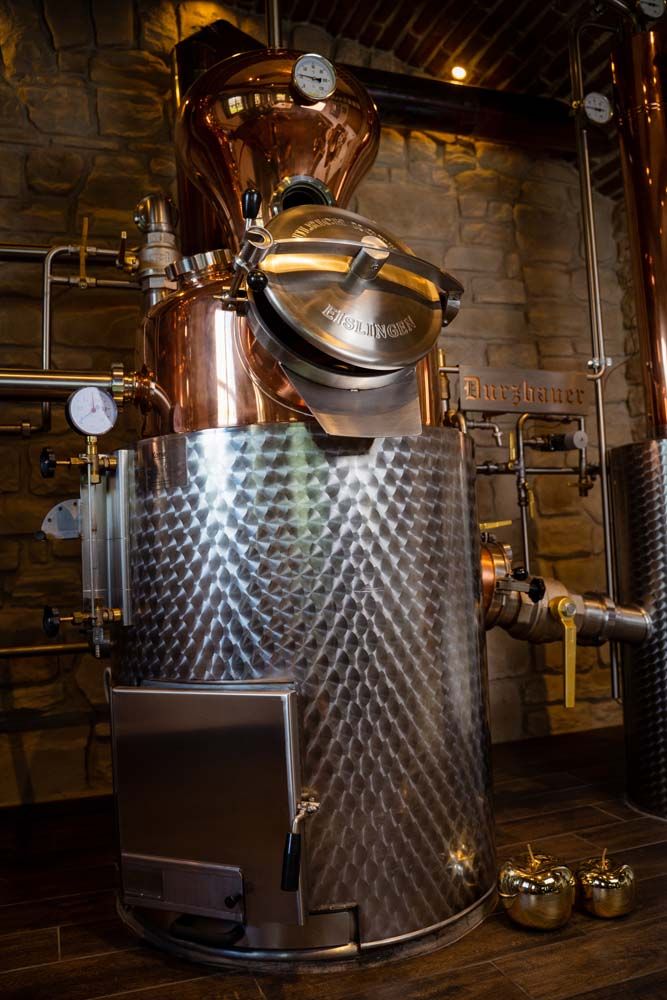 Mit dem Neubau der Schaubrennerei wurde der Betrieb 2014 für die Öffentlichkeit zugänglich gemacht. Die Brennerei wird als sogenannte Kleinverschluss-Brennerei betrieben, das heißt es gibt ein Limit, das die hergestellte Menge an Alkohol begrenzt. Das heißt auch, dass nicht das ganze Jahr über gebrannt werden kann.
